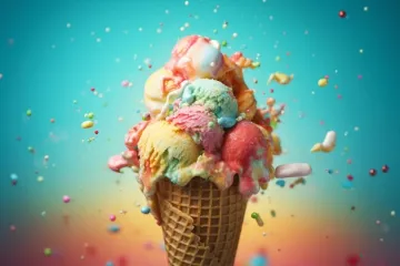 En sevdiğiniz dondurmanın üç kepçesinin keyifli kombinasyonumuzla nihai yaz tedavisinde çıtır bir koni servis! Bu lezzetli yaratım sizi sadece o sıcak günlerde soğutmakla kalmaz, aynı zamanda tatlı dişinizi başka hiçbir şey gibi tatmin eder. İster klasik lezzetler ister maceracı kombinasyonlar ister, her kepçe ağzınızda eriyen kremsi bir iyilik patlamasıdır. Gevrek koni mükemmel bir dokuyu ekler ve her ısırmayı keyifli bir deneyim haline getirir. Öyleyse, arkada